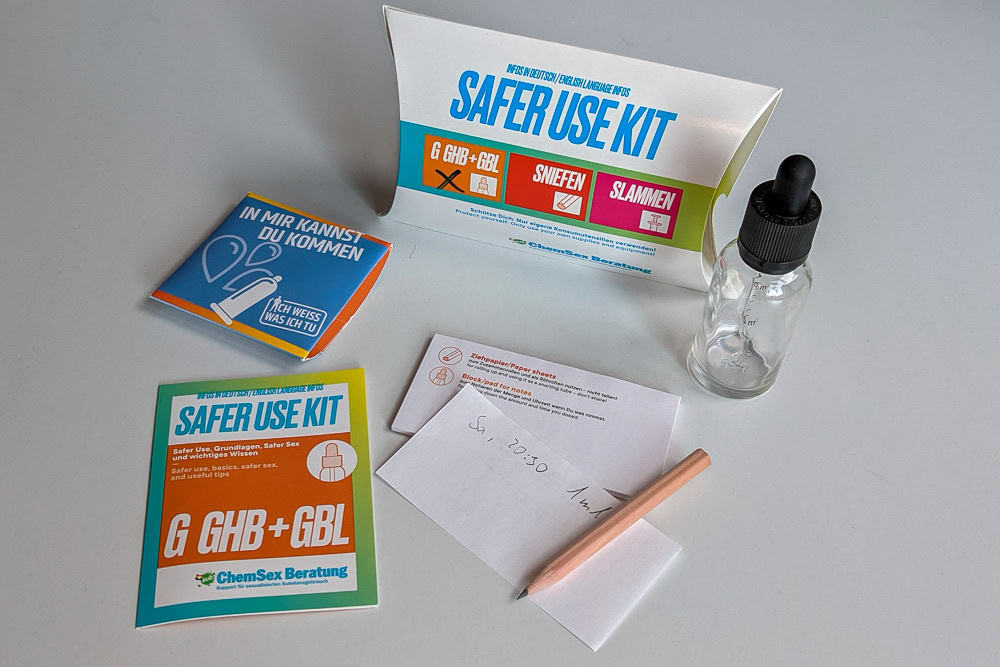 Aber auch unabhängig davon kannst Du vorbei kommen und Dir Safer Use Kits abholen - ohne Termin oder Sprechstunde.